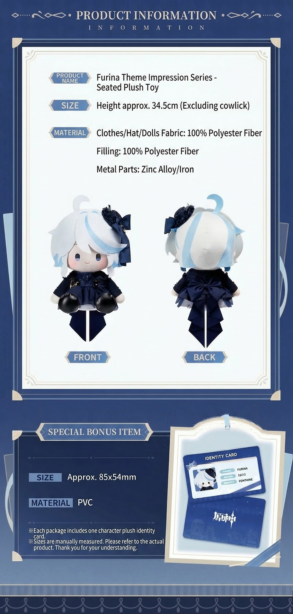 Product Name: Furina Themed Impression Series – Sitting Plush Doll