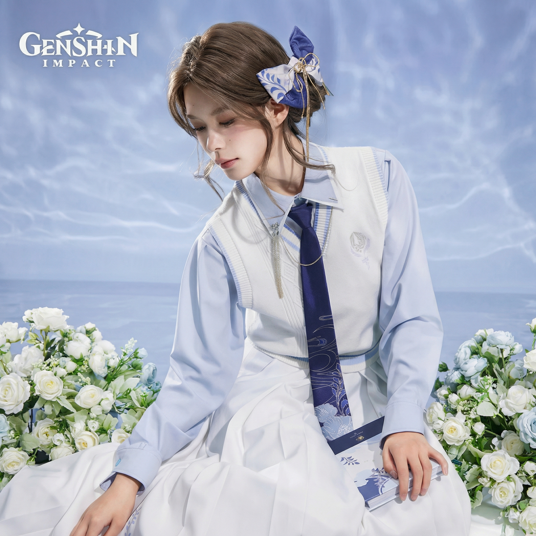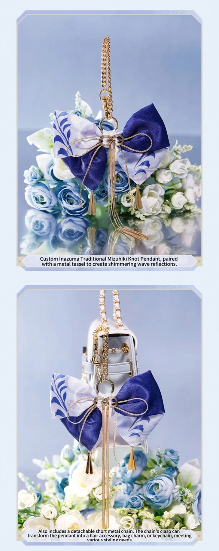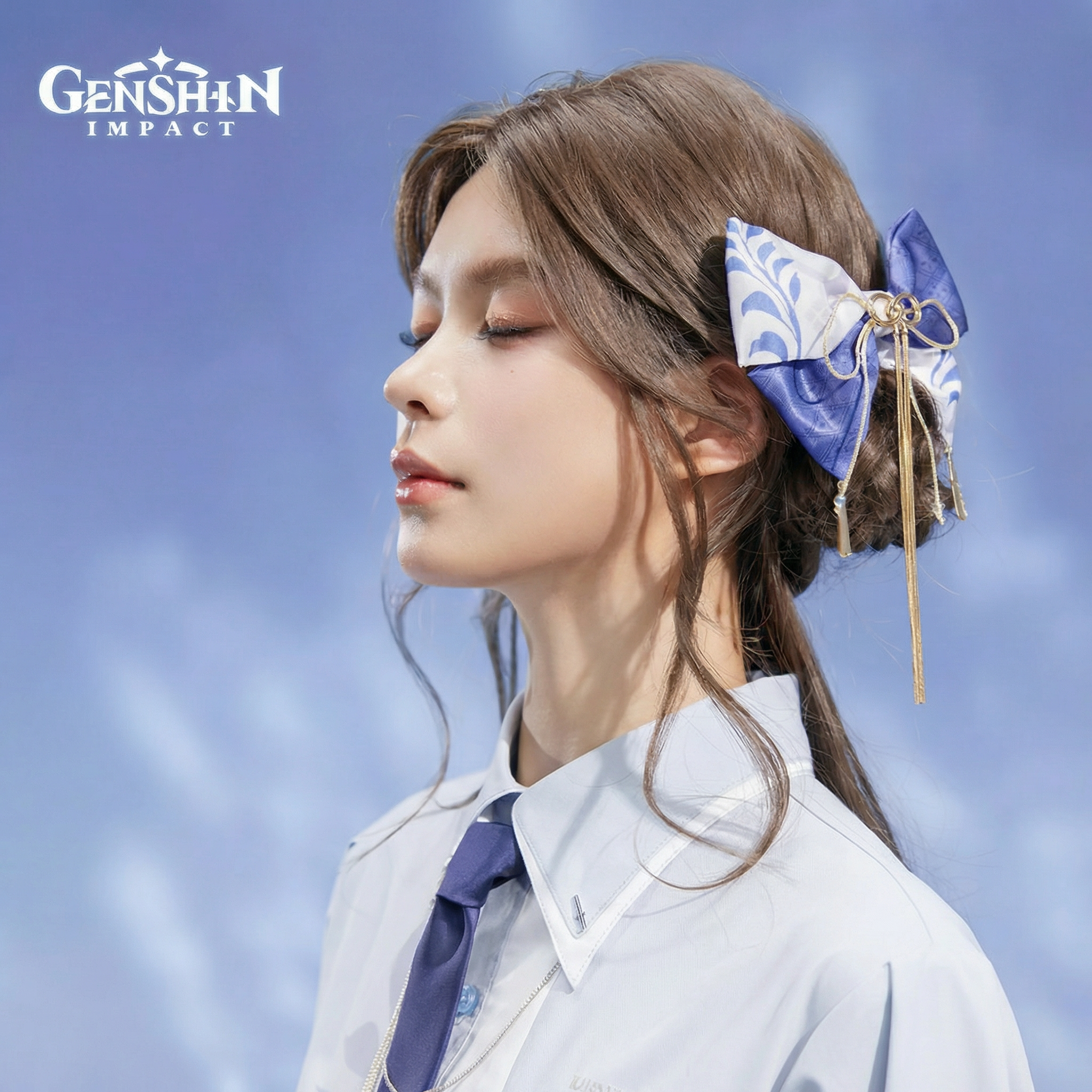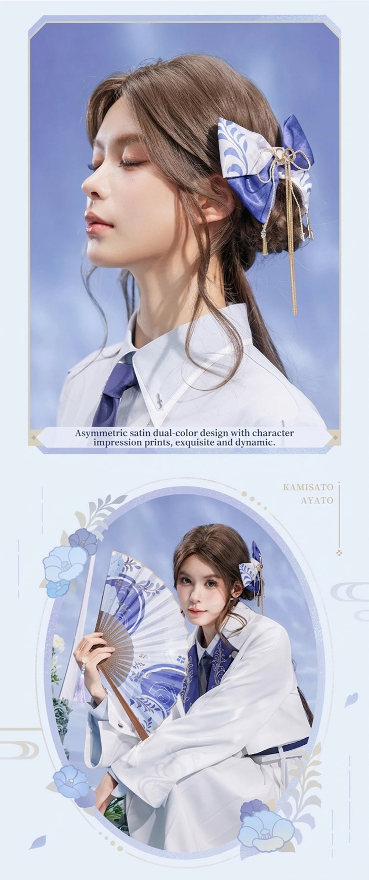Genshin Impact Kamisato Ayato Impression Series Elegant Ribbon Bow Hairclip & Bag Charm