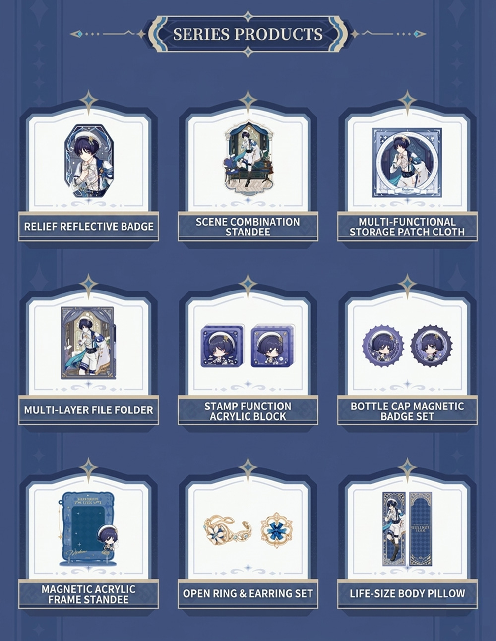 | Style | Embossed Reflective Badge, Scene Acrylic Standee Set, Multi-layer Folder / File Folder, Multifunctional Microfiber Storage Cloth, Chibi Bottle Cap Magnetic Badge Set, Self-standing Acrylic Stamp Brick, Chibi Magnetic Acrylic Photo Frame Stand, Adjustable Ring & Earring Jewelry Set |