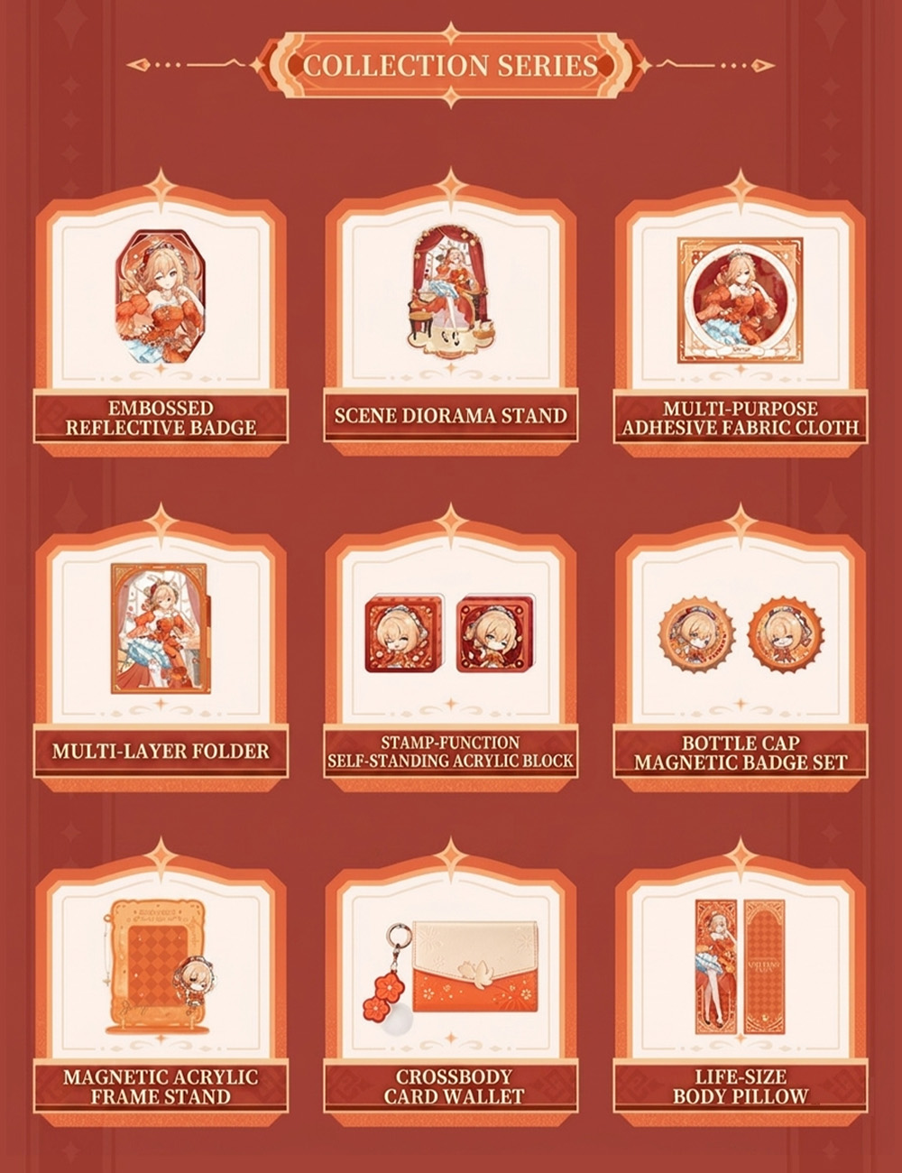 | Style | Embossed Reflective Badge, Scene Combination Acrylic Stand, Multi-layer Folder, Multi-functional Storage Cloth, Chibi Bottle Cap Magnetic Badge Set, Self-Standing Stamp Acrylic Block, Chibi Magnetic Acrylic Photo Frame Stand, Crossbody Card Bag |