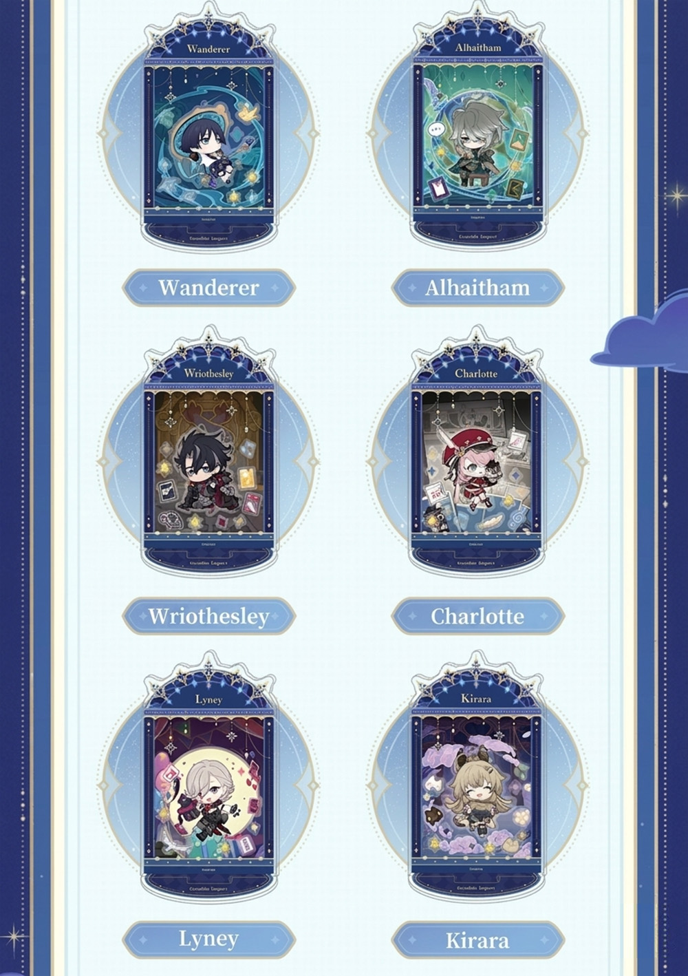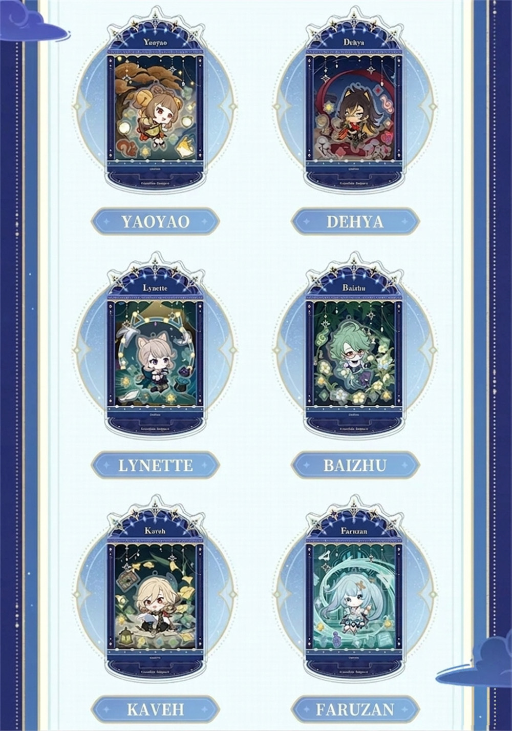 Furina, Neuvillette, Wriothesley, Wanderer, Alhaitham, Charlotte, Lyney, Lynette, Freminet, Kirara, Yaoyao, Dehya, Baizhu, Kaveh, Faruzan, Mika