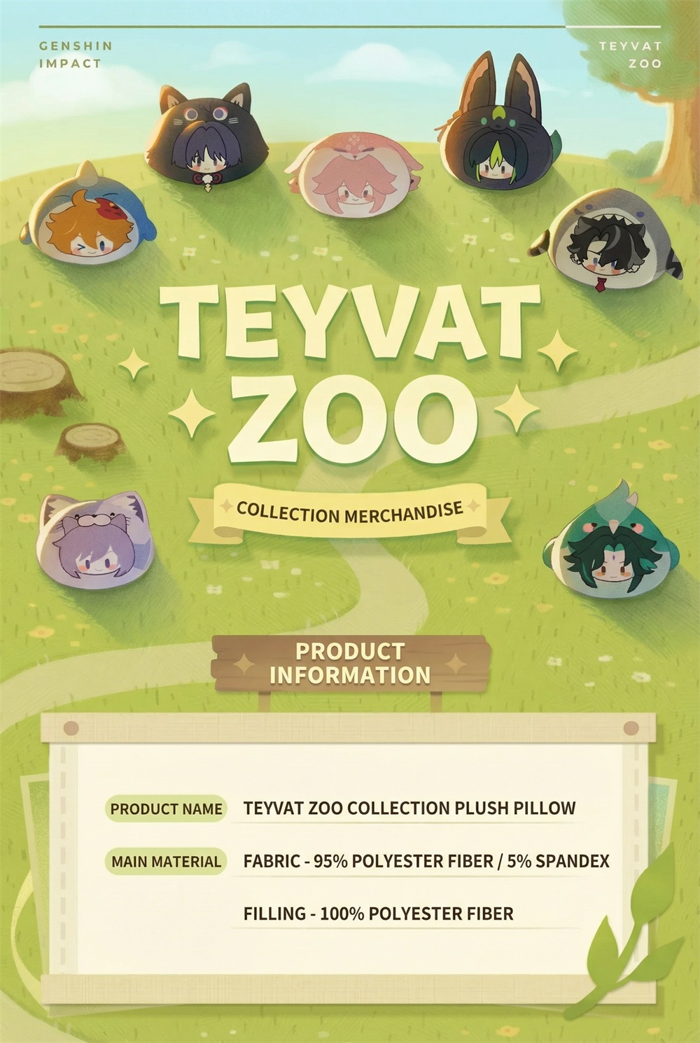 Genshin Impact Teyvat Zoo Series Plush Pillow – Official Themed Stuffed Toy