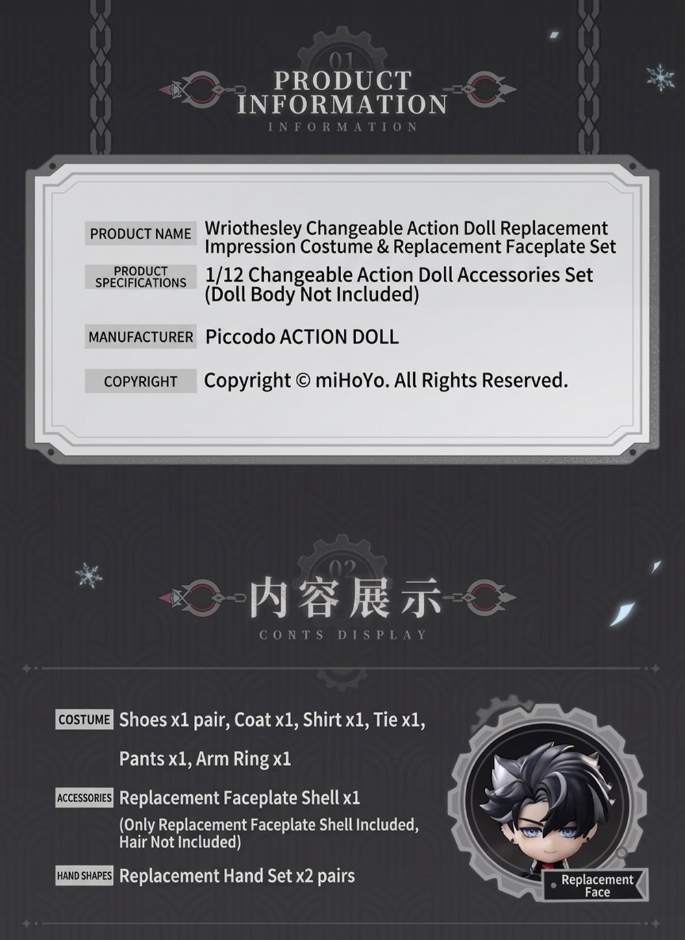 Genshin Impact Wriothesley Dress-Up Posable Doll Alternate Impression Outfit & Alternate Expression Faceplate Set